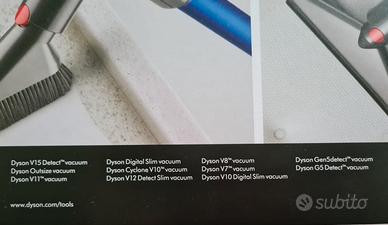 Vendo Kit Dyson originale, nuovo, mai usato. Il kit è progettato per pulire superfici impolverate e arredi delicati.