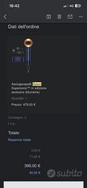 phon è in ottime condizioni, perfettamente funzionante e sempre utilizzato con cura. Completo di tutti gli accessori originali, inclusi nella confezione, e scatola originale. Ideale per chi cerca un prodotto professionale per la cura dei capelli, con asciugatura rapida e senza danneggiarli. 🔹 Condizioni: come nuovo 🔹 Accessori: completi 🔹 Scatola: inclusa 🔹 Provenienza: sito ufficiale Dyson
