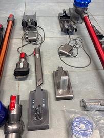 Dyson v10 da sistemare (bottone di start con molla da sostituire) con tutti gli accessori comprese alcune spazzole originali nuove e mai usate, due batterie e diversi filtri e adattatori.