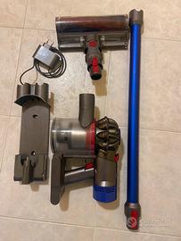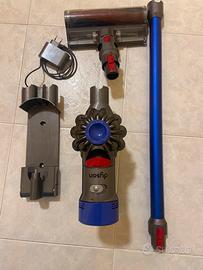 Aspirapolvere Dyson V8 Absolute, un valido aiuto per la pulizia della casa. - Colore blu e grigio. - Include caricabatterie e accessori. - Tubo di prolunga blu.