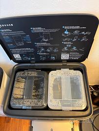 Aspirapolvere e lavapavimenti, stazione All-in-one, aspirazione 8000 Pa, design sottile e squadrato, cuscinetti di sollevamento da 15 mm, lavaggio con acqua calda, sistema intelligente di aggiramento ostacoli. 1 serbatoio per l'acqua pulita, 1 serbatoio per l'acqua sporca. Perfettamente funzionante.