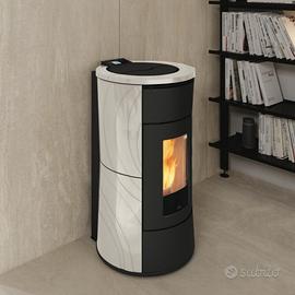 Stufa a pellet canalizzabile, caratterizzata dall'elegante design a clessidra. Alla forma originale si aggiunge un'elettronica all'avanguardia: il Sistema The Mind con wifi integrato e il radiocomando Mind Remote consentono un perfetto controllo del riscaldamento anche da remoto.