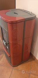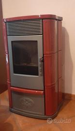 Stufa a pellet Edilkamin con scarico forzato regolabile e pannello sinottico con comandi a manopole e display LCD.