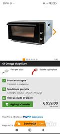 Forno per pizza professionale per uso domestico e per locali commerciali tranquillamente si può usare con corrente 220v, ideale per la preparazione di pizze e non solo. l'interno è in acciaio è corredato da una spessa pietra refrattaria e di una sottile.
