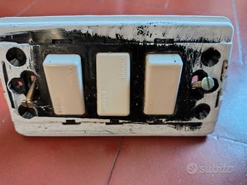 Vendo in blocco elementi bTicino serie Magic recuperati da impianto elettrico esistente (180 mq), tutti funzionanti al momento dello smontaggio, ma che presentano inevitabilmente i segni del tempo (ingiallimento). Eventuale spedizione (solo tracciata, peso circa 11 kg) a carico dell'acquirente.