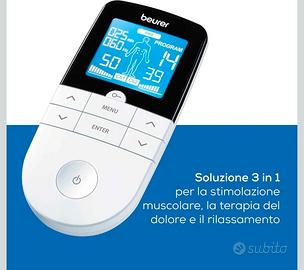 Beurer EM 49 Digital TENS/EMS, elettrostimolatore 3 in 1 per alleviare il dolore tramite elettrostimolazione nervosa, allenamento EMS, funzione massaggio, 2 canali, 6 programmi, 4 elettrodi
