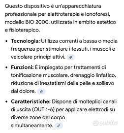 Questo dispositivo è un'apparecchiatura professionale per elettrostimolazione, nello specifico un modelloBIO 2000prodotto dalla FIAB.