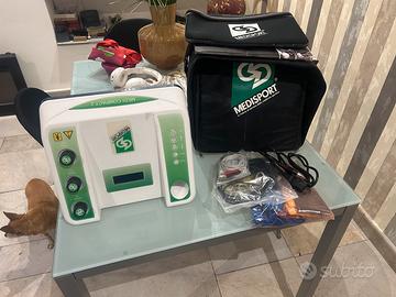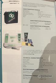 Apparecchiatura fisioterapia combinato composto da elettroterapia con 10 tipi di correnti e 15 cicli terapeutici per due uscite indipendenti ed ultrasuono terapia da un mega hertz con funzione continua pulsata e pellicolare