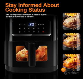 【Gran Capacidad XXL】Gracias a 1800W de potencia y sus 7L de gran capacidad, más aprovechados gracias a la cesta interior cuadrada, la freidora sin aceite le permitirá cocinar para hasta 5-7 personas. Cocine una mayor cantidad de alimentos o inclusa los más voluminosos como el pollo. It has a recuperbrimiento antiadherente de alimentario, fácil de limpiar.