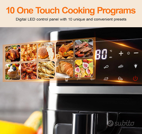 【Panel táctil LED】La freidora está equipada con pantallas LED, comes with 10 programas preestablecidos, su uso es muy sencillo sólo tiene que seleccionar la función que quiera usar o si lo prefiere hacer un ajuste manual ha de 50ºC a 200ºC de temperatura y de un tiempo a19time 0 to 60 min.