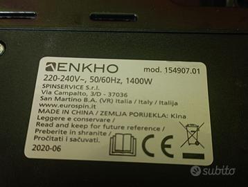 Piastra a induzione bistecchiera Enkho Dettagli Tecnici : Piastre apribili a 180°, temperatura regolabile, vaschetta raccogli grasso removibile. misure 35x33 per altezza 12 cm perfettamente funzionante