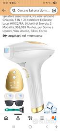 Potenza Elevata da 21J con Szione Profonda Mirata: Epilatore Luce Pulsata con 9 Livelli di energia regolabili e un'emissione energetica fino a 21J, il dispositivo utilizza una tecnologia a luce rossa avanzata (530-1200 nm) che agisce in profondità sui follicoli piliferi, assicurare una depilazione efficace Multifunzione: Il dispositivo ha un totale di 999999 flash, che possono completare oltre 30 cicli di cura del corpo completo. Le due modalità possono essere commutate liberamente. La modalità manuale viene utilizzata per rimuovere piccole aree come i peli delle ascelle e la modalità automatica per gambe, braccia e schiena. È possibile selezionare cinque livelli di energia per adattarsi alle caratteristiche dei peli in diverse parti Raffreddamento Piacevole per una Sensazione Delicata: L'innovativo funzione di raffreddamento del epilatore Luce Pulsata riduce la temperatura cutanea fino a 5°C, rendendo la depilazione più confortevole e prevenendo irritazioni. Ideale per chi ha la pelle sensibile, questa tecnologia garantisce un'applicazione delicata e sicura, anche con un utilizzo frequente Display LCD Intuitivo e Funzioni: Il chiaro display LCD del epilatore Luce a pulsata semplifica l'uso,mostrando in tempo reale le modalità, le impostazioni e il numero rimanente di impulsi luminosi. Un meccanismo di sicurezza integrato assicura che gli impulsi vengano emessi solo a diretto contatto con la pelle, garantendo un'applicazione sicura e affidabile Risultati in 3 Settimane: Fino al 70% di riduzione della peluria in 1 mese: la tecnologia IPL luce pulsata penetra in profondità nel follicolo, bloccando la ricrescita. Con la modalità flash continua, l’epilatore luce pulsata professionale tratta entrambe le gambe in soli 6 minuti. Una soluzione veloce, pratica e duratura per la tua depilazione laser a casa