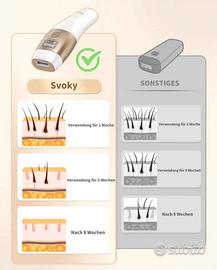 CARATTERISTICHE: Svoky IPL Hair Removal - dispositivo di epilazione a luce pulsata intensa (IPL) massimizza l'accesso all'area e praticamente a ogni follicolo pilifero, riducendo in modo permanente i peli in sole 4 settimane.
