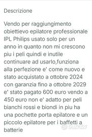 vendo per raggiungimento obiettievo epilatore professionale IPL Philips usato solo per un anno funziona perfettamente