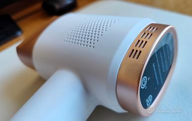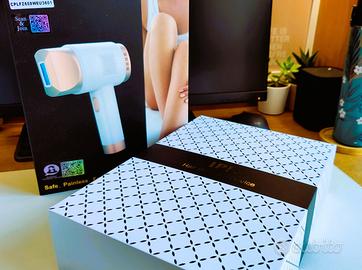 Epilatore luce pulsata IPL 3 in 1 con funzione di raffreddamento e display LCD touch screen. Dispositivo multifunzione 3 in 1: luce pulsata IPL con modalità HR (hair removal - rimozione peli), SC (skin care - ringiovanimento pelle) e RA (removal acne - trattamento acne). Depilazione in 10 minuti: in modalità flash continuo per la rimozione dei peli 10 minuti per trattare tutto il corpo. E' adatto anche a bikini, ascelle, viso. Dotata di 9 livelli di energia con un'energia massima di 21 joule. (Si consiglia di iniziare con il primo livello di energia per il primo tentativo.) Per il trattamento della pelle è dotato di onda di luce rossa a 600nm-1200nm. Prodotto NUOVO, mai usato, in confezione originale.