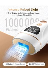 Epilatore Luce Pulsata, epilazione laser permanente con funzione di raffreddamento, 1 milione Impulsi, 9 livelli di flash per utilizzo su viso, ascelle, zona bikini, gambe, schiena.