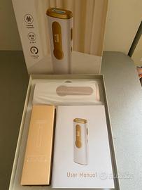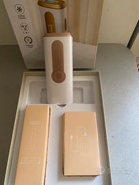epilatore a luce pulsata con funzione raffreddante, praticamente nuovo. Ha 9 livelli di intensità, schermo digitale e arriva completo di occhiali, rasoio e manuale. Perfetto per fare l’epilazione a casa in modo facile e indolore.