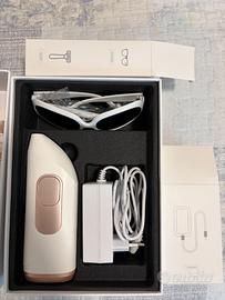 Epilatore Luce Pulsata con Funzione di Raffreddamento, Epilatore Laser per Flash Illimitati con 5 Livelli di Energia e spiegazioni dettagliate sul programma da usare. Nuovo mai utilizzato, comprende caricatore, rasoio e occhiali protettivi.