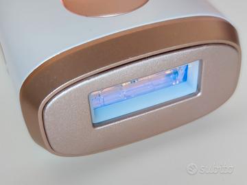 Epilatore laser a luce pulsata, inusato. Include l’epilatore, un alimentatore di rete, una guida rapida, un manuale multilingue (incluso l’italiano), un rasoio di sicurezza a mano, un paio di occhiali per evitare abbagliamenti. Oltre alla depilazione, può essere usato anche per il trattamento dell’acne e per il rinnovamento della pelle. Tramite un unico pulsante si seleziona la modalità di funzionamento (automatica o manuale), il tipo di trattamento specifico sui 3 disponibili, la potenza (9 livelli disponibili). Durata praticamente infinita. Include un sistema di raffreddamento. Epilazione indolore con Energia Massima 22J e 999900 Lampeggi, IPL Epilatore Laser con Tecnologia IGBT, Adatto per Viso Ascelle Gambe e Corpo.