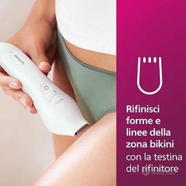 Philips Epilator Series 8000, dispositivo di epilazione Wet & Dry cordless per gambe e corpo con 6 accessori, rifinitore ed esfoliante corpo, modello BRE715/00 Pelle liscia per settimane con l'epilatore da donna − Philips serie 8000 dotato di tecnologia a duplice azione in grado di catturare e rimuovere anche i peli più corti, a una lunghezza di appena 0,5 mm. Il nostro epilatore più veloce, dotato di un'ampia testina con pinzette più lunghe del 50%, rimuove più peli in una sola passata per la massima efficienza, con meno attrito e un maggiore contatto con la pelle*. Epilatore progettato per lavorare con estrema delicatezza, grazie alle 32 pinzette in ceramica ipoallergeniche che scorrono sulla pelle e alla funzione Wet & Dry per l'epilazione con acqua calda. Modella la tua zona bikini con facilità: rifinisci forme e linee della zona bikini a una lunghezza di appena 1 mm, grazie alla testina extra del rifinitore inclusa. Epilatore semplice da utilizzare, dotato di un'impugnatura comoda ed ergonomica a S, cordless per poter raggiungere meglio qualsiasi parte del corpo. Il set include: 1 epilatore, 1 testina del rifinitore per la zona bikini, 1 guanto esfoliante per il corpo, 1 testina per zone delicate, 1 testina a contatto ottimale e molto altro ancora. Controllare la descrizione. *rispetto a Philips Satinelle Advanced e Satinelle Prestige.