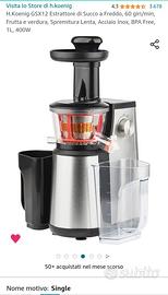 Estrattore di succo per frutta e verdure H. Koenig mod. GSX12, come nuovo usato due volte ancora con scatola originale. Affare vendo per inutilizzo €40