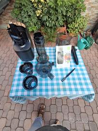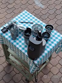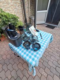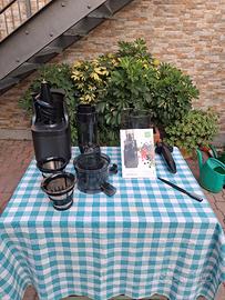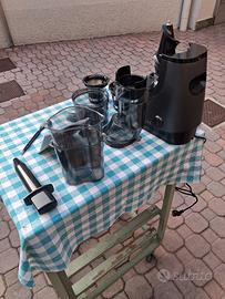 modello verticale, componenti separabili, completo di libretto di istruzioni, materuale in plastica robusta e acciaio inossidabile, tecnologia a bassa velocita' per spremere al megkuo frutta e verdura e messo nel congelatore si fa un ottimo gelato di succo naturale, usato solo 3 volte.