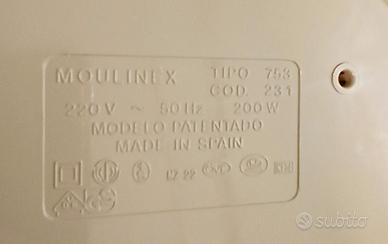 Vendo estrattore di succo (frutta+verdura) vintage marca Moulinex mod. 753. Usato poco ed assolutamente non sfruttato. Perfettamente funzionante.