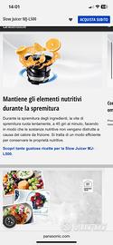 Estrattore di succo slow, Panasonic MJ-L500 usato, con scatola originale- tutti i pezzi originali-parti metalliche leggermente scurite dalla frutta stessa