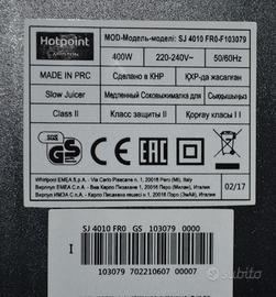 Estrattore di succo HOTPOINT ARISTON Sj 4010-FRO 400 W 220-240 Volt Usato 3-4 volte