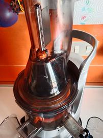 L’imbuto extralarge di 75mmad introduzione verticale diretta permette di inserirefrutta e verdure intere, senza bisogno di tagliarle a pezzetti, con un notevole risparmio di tempo e di utensili da cucina!