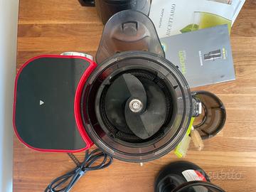 L'estrattore è usato e presenta normali segni di usura. E' tutto perfettamente funzionate. Il cestello in plastica degli scarti ha una fessura causata da una caduta ma è perfettamente funzionate e non perde.