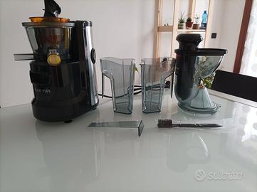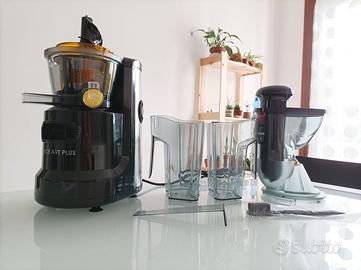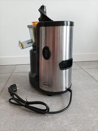 Estrattore nuovo con sistema di spremitura a freddo a 60 giri al minuto che mantiene intatte le proprietà di frutta e verdura quali enzimi e vitamine. Condotta di alimentazione diametro 75 mm. Facile e veloce da pulire.