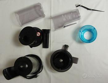 Sistema di estrazione in acciaio senza lame. La bassa velocità del sistema di estrazione evita che il calore intacchi le sostanze nutritive. Versatile, è ideale anche per creare bevande ghiacciate sperimentando l'accessorio frozen.