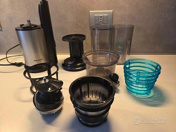 Panasonic Slow Juicer Estrattore, Spremitura di Frutta e Verdura Intera, Apertura 75mm, Design Elegante e Sottile, Con Accessorio per Ingredienti Ghiacciati ottimo per l'estate SPREMITURA DI FRUTTA INTERA: Con un'ampia apertura di 75 mm, questo estrattore di succhi consente di inserire facilmente frutta e verdura intere, per ottenere più sapore e nutrimento POTENTE FRANTUMAZIONE E SPREMITURA: Il processo di frantumazione efficace ed efficiente di questo estrattore facilita il trattamento anche di ingredienti duri come le carote DESIGN SOTTILE E RAFFINATO: La finitura nero opaco di grande impatto e il bicchiere in Tritan, privo di BPA e infrangibile, rendono questo estrattore l'accessorio ottimo da usare in cucina SUCCO DI QUALITA' SENZA SEPARAZIONE: Il lento processo di spremitura di questo estrattore offre livelli più elevati di sostanze nutritive e nessuna separazione del succo GUSTO VELLUTATO: Questo estrattore di verdure facile da pulire separa perfettamente la polpa e il succo, offrendo ogni volta un gusto naturale e vellutato SICURO E PRATICO: Per sicurezza, questo spremiagrumi si spegne automaticamente quando il coperchio è aperto, mentre l'apertura del coperchio consente di aggiungere ingredienti durante il funzionamento