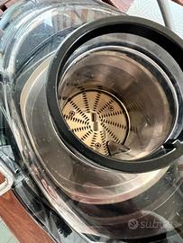 Vendo centrifuga compact Cuisinart in Acciaio Inox – Estrattore Succhi Professionale robusto e performante per preparare succhi freschi. Grazie al design in acciaio spazzolato e alla potenza del motore, permette di processare rapidamente anche frutta e verdura più dura (mele, carote, zenzero). Materiali di alta qualità: Corpo e filtro a micro-maglia in acciaio inossidabile per la massima igiene e durata. Disco di taglio ultra-affilato per un'estrazione ottimale del succo e scarti minimi. Contenitore del succo graduato (fino a 480ml) Barra di bloccaggio laterale in metallo e tasto di accensione I/O intuitivo. Componenti rimovibili e lavabili separatamente.
