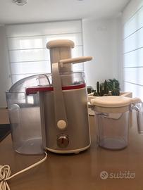 Estrattore succo Moulinex Easy Fruit 2 velocità con tubo di inserimento XL, filtro extra-fine in acciaio, capacità 3 lt, brocca da 1.25 lt, contenitore polpa 2 lt con rubinetto dotato del sistema anti-goccia, avvolgicavo. Elementi smontabili e lavabili in lavastoviglie.