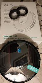 Include: un RoboVac 30C, striscia di delimitazione da 4 metri, un telecomando (con 2 batterie AAA), una stazione di ricarica, un caricabatterie AC, uno strumento per la pulizia, un set di ricambio con filtri ad alte prestazioni, 4 spazzole laterali, 5 fascette stringicavi, un manuale di istruzioni.