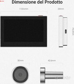 【Risoluzione 1080P & Visione Grandangolare a 146° & Batteria Ricaricabile da 2200mAh】L'EZVIZ CP2 ha un campo visivo grandangolare di 146 gradi per ridurre al minimo gli angoli morti. Grazie all'obiettivo ad ampia apertura F1.6, è possibile catturare chiaramente i dettagli con una risoluzione di 1080P. Dotata di una batteria ricaricabile agli ioni di litio da 2200 mAh, ha una lunga durata in standby e non deve essere ricaricata frequentemente. 【Schermo a Colori da 4,3 Pollici】Con EZVIZ CP2 campanello senza fili con spioncino, non è necessario andare fino alla porta prima di sapere chi sta bussando. Grazie all'ampio schermo a colori da 4,3 pollici collocato all'interno della porta, è possibile vedere le immagini in diretta e identificare facilmente i visitatori anche a distanza. 【Vista dal Vivo da Qualsiasi Luogo】Lo spioncino EZVIZ CP2 può essere collegato in modalità wireless al vostro router WiFi, consentendovi di visualizzare l'immagine dal vivo e di controllare lo spioncino da qualsiasi luogo tramite il vostro telefono cellulare. È possibile utilizzare l'app EZVIZ per vedere tutto ciò che accade alla porta senza perdere alcun dettaglio. 【Design per la Protezione della Privacy】Il CP2 ha un diametro dimezzato rispetto agli altri spioncini digitali EZVIZ, per cui la vostra privacy è maggiormente protetta. Con lo spioncino digitale CP2 installato, gli estranei all'esterno non saranno in grado di vedere attraverso il foro verso l'interno. EZVIZ CP2 è realizzato in lega di zinco ad alta resistenza e ha un aspetto elegante che si adatta a qualsiasi stile di ingresso. 【Facile Installazione e Connessione Wireless】Questo spioncino digitale EZVIZ WiFi è adatto a porte di spessore 35-105 mm e supporta fori di diametro 14-26 mm. Viene fornito con tre diverse lunghez