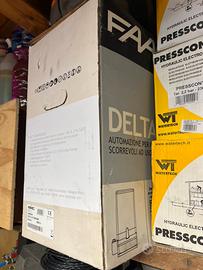 Kit cancello scorrevole Faac Delta 2 Kit completo motore fotocellule lampeggiante ,selettore a chiave e telecomando, oltre a scheda e lampeggiante di ricambio, tutto materiale nuovo , chiedetemi i prezzi dei singoli articoli