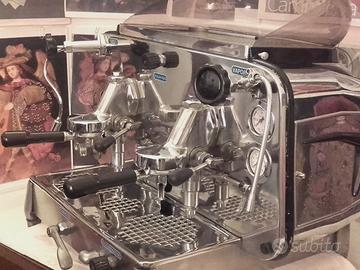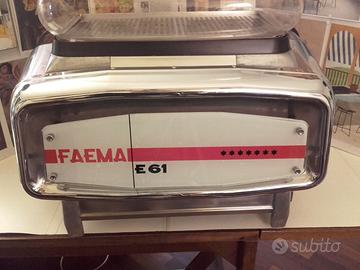 Faema E61 macchina del caffè 220V, con caldaia in rame del 1966, dotata di due braccetti per il caffè. Cupola di plastica del poggia tazze con delle crepe causate durante il trasporto. Macchina rimossa dal bar funzionante, da revisionare prima della messa in funzione.