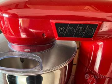 Family Care Impastatrice Planetaria, 1000 W, Ciotola in Acciaio Inox da 4,5 L, Impastatrice, Frusta e Sbattitori in Acciaio, Protezione Dagli Schizzi, Rosso.