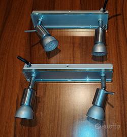 Vendo coppia di faretti da 2+2 luci orientabili, usata ma ottima qualità, con già montate 4 lampade, rifinitura frontale in vetro, molto belle, piastra lunghezza 25,2 cm, larghezza 5,2 cm, altezza massima con faretti dritti 14,7 cm, vendo a euro 20 consegna a mano o spedisco.