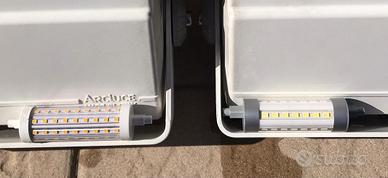 N.2 fari da esterno con luce anteriore e posteriore in alluminio presso fuso di altissima qualità Made in Italy -IP66 quindi con massima resistenza agli agenti atmosferici- Dimensioni: altezza 40 - lunghezza 25/profondità 14 cm- regalo 2 lampade Led