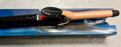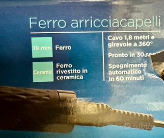 Ferro arricciacapelli diametro 19 mm, lunghezza 125 mm, rivestito in ceramica, cavo da 1,8 m girevole a 360 gradi, pronto in 30 secondi. Spegnimento automatico. Potenza 33 W. Temperatura massima 200 gradi. Come nuovo. Usato una sola volta. Perfettamente funzionante lo vendo completo di scatola originale.