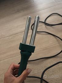 I due tubi riscaldati permettono di modellare sezioni di capelli tra di essi, creando un effetto ondulato.