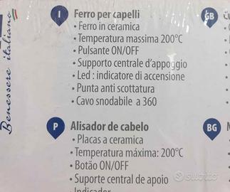 Ferro per capelli mai utilizzato, ancora con cellophane che avvolge la scatola.