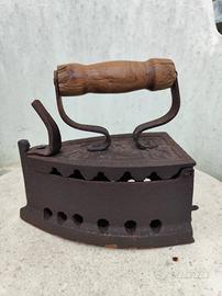 Ferro da stiro antico a carbone, con manico in legno. Ben conservato. Ritiro a Siena.