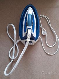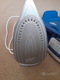 Ferro da stiro a vapore con caldaia, colore blu e bianco.