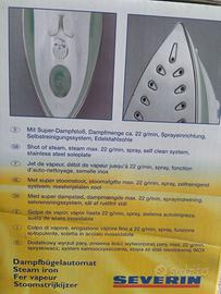 Vendo ferro da stiro con con colpo di vapore, erogazione vapore fino a 22 g/min, funzione autopulente, soletta in acciaio inossidabile, termostato regolabile, serbatoio dell'acqua trasparente, cavo di alimentazione con attacco girevole antipiega. Prezzo 20 euro