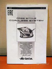 Ferro da stiro Ariete 6236 Freestyle cordless, utilizzo senza filo, piastra in ceramica con sistema anti goccia, serbatoio 300 ml, 2400 Watt, colpo vapore di 198 g/min.